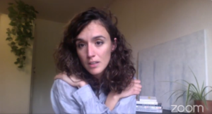 After this understanding of the importance of touch in human development, Alba opened the discussion for adult life. Explaining that adults are not anymore as sensitive as babies are, but we still need tactile stimulation in our daily life to be able to feel ourselves. This ability, related to the proprioception, gives us the sense of our movements and spatial location. Basically, it makes us feel where we are and where the limits between us and the outside are. To talk about this, Alba invited us to dance with the sound of music, which quite changed the mood of what we usually expect from a live stream.