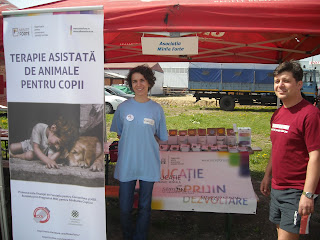 Ioana: Mi-a plăcut foarte mult! A fost plin de căței și am putut vedea de aproape rasele de câini prezentate. De asemenea, am avut și niște demonstrații foarte frumoase de dresaj, atât de frumoase încât cu greu am rezistat tentației de a abandona standul pe durata demonstrațiilor. Dar și la stand a fost cel putin la fel de frumos. Oamenii au trecut pe la standuri mai ales în pauzele dintre demonstrații. Am avut astfel ocazia să interacționez cu unii oameni chiar foarte interesați de terapia asistată de animale sau de a ne deveni colaboratori.