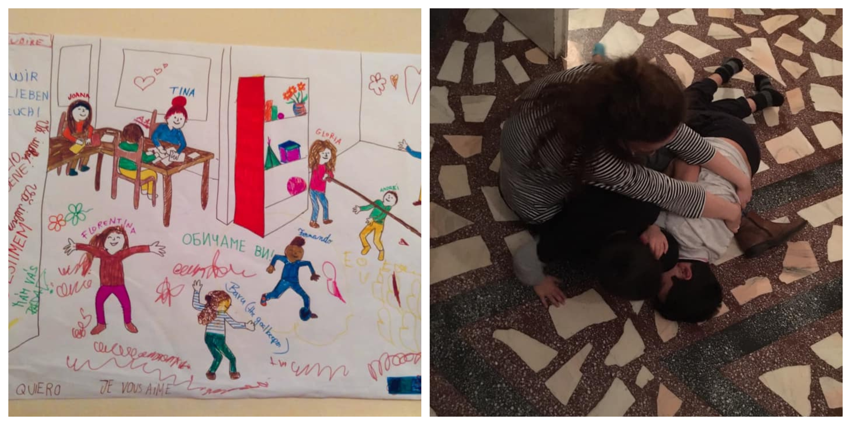 We started again our weekly activities at Aksza; dancing, playing, using our creativity and sharing great energy! And in the The End of January we also had our last workshop with them; everybody was processing this fact in their own way, but it touched all of us. To finish; we made a big pre-drew picture with an image of all of us playing together, and each one colored her/himself. We also kept together in an “Album de Desene” some draws of everybody of all the workshops and we gave it to them!